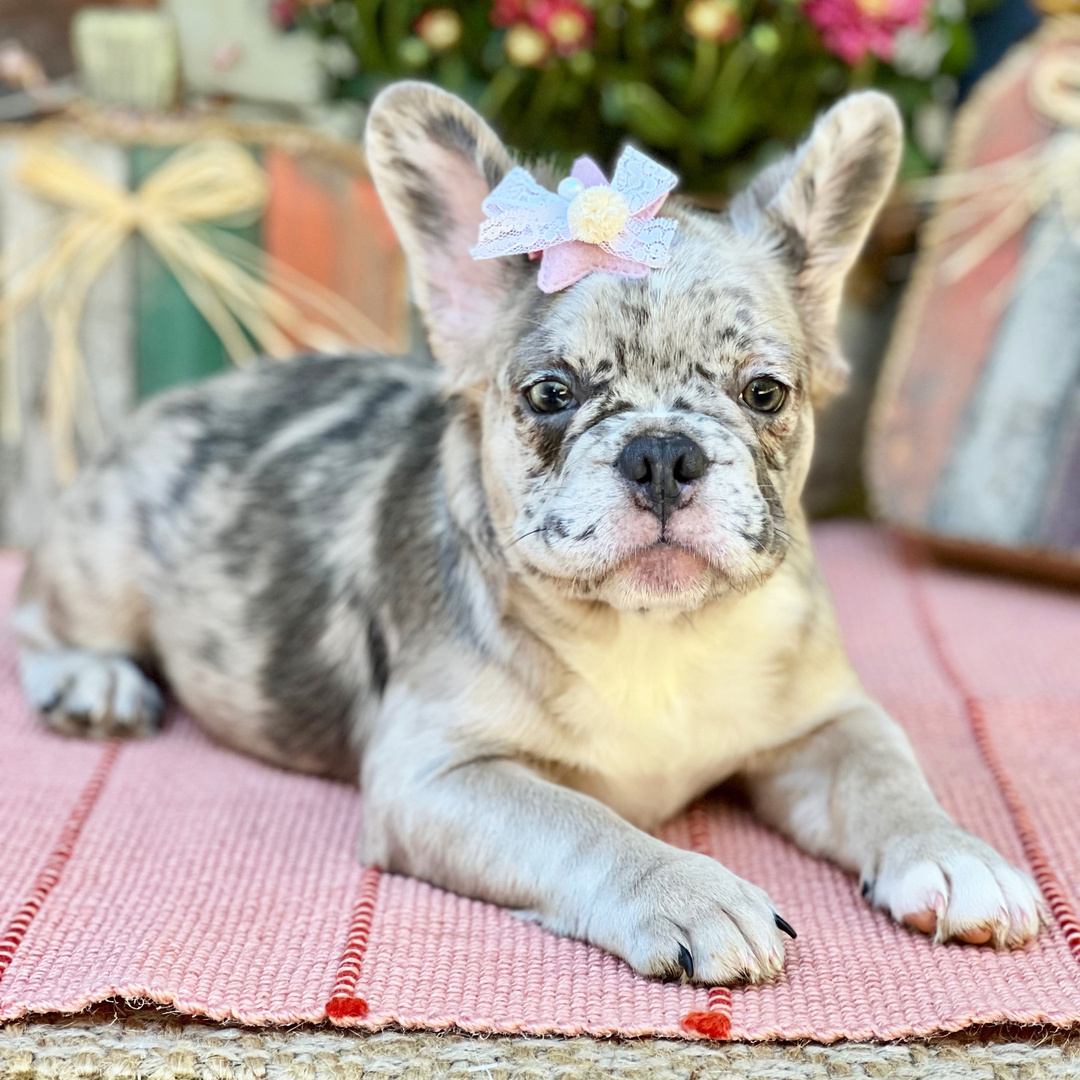 Franska bulldoggar har kort, glansig päls som kräver regelbunden borstning för att hålla sig frisk och fri från döda hårstrån. En merlefärgad bulldogg som Faith behöver extra uppmärksamhet kring hudvård eftersom pälsen ibland kan vara känsligare.