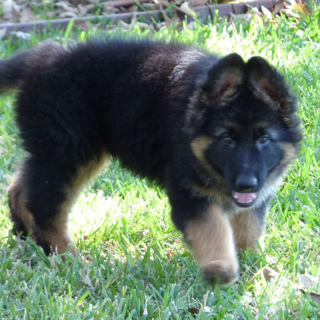 Hon har redan börjat med grundläggande lydnad och är lättlärd, vilket är typiskt för den intelligenta schäferrasen. Hon gillar lek, promenader och att följa med på vardagliga äventyr – perfekt för aktiva familjer eller hundälskare som vill ha en trogen vän för livet.