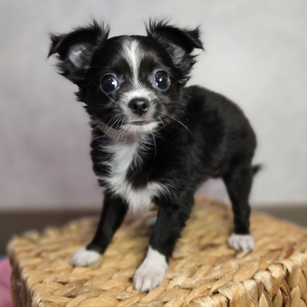 SKK-registrerad chihuahua till salu – Möt Nacho, en 8 veckor gammal hanchihuahua med svart päls. Renrasig, kärleksfull och redo för sin nya familj i Sverige. Tillgänglig i Stockholm, Göteborg, Malmö och fler städer.