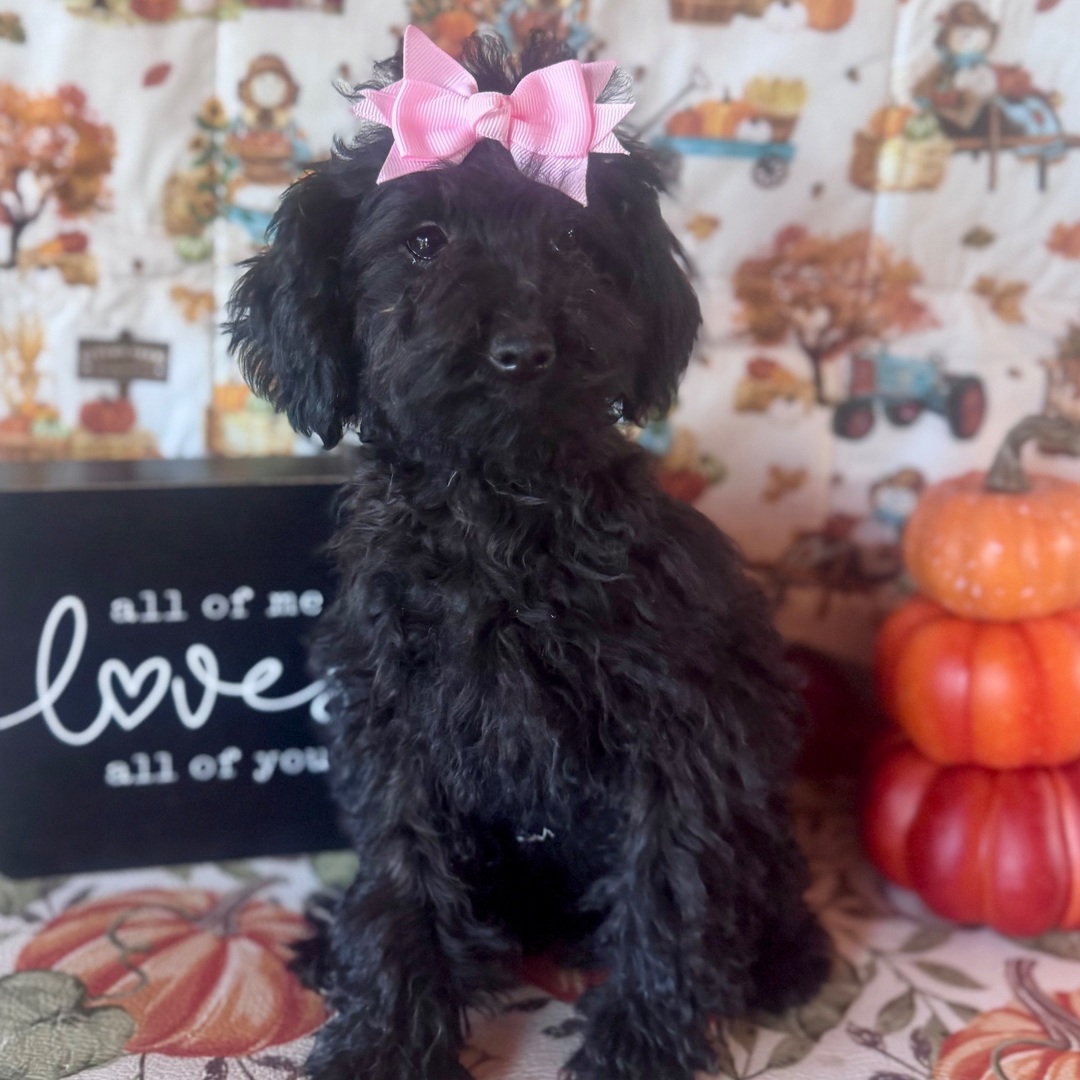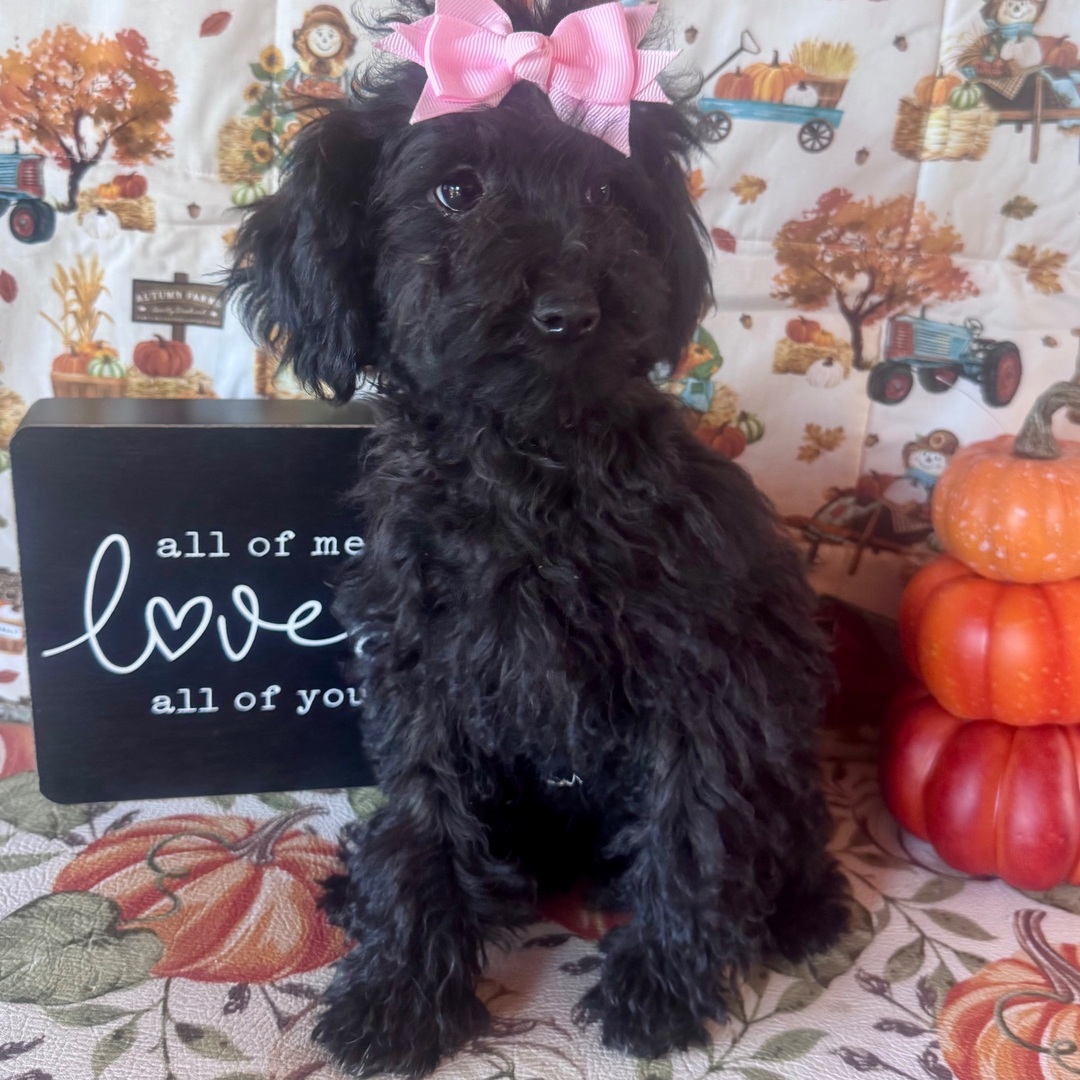 Hej, jag heter Leslie! Jag är en 18 veckor gammal pudeltik med en vacker svart päls. Jag är redo att planera min resa till min familj för alltid. Jag är APRI-registrerad. Jag är en liten slyna med en stor personlighet.