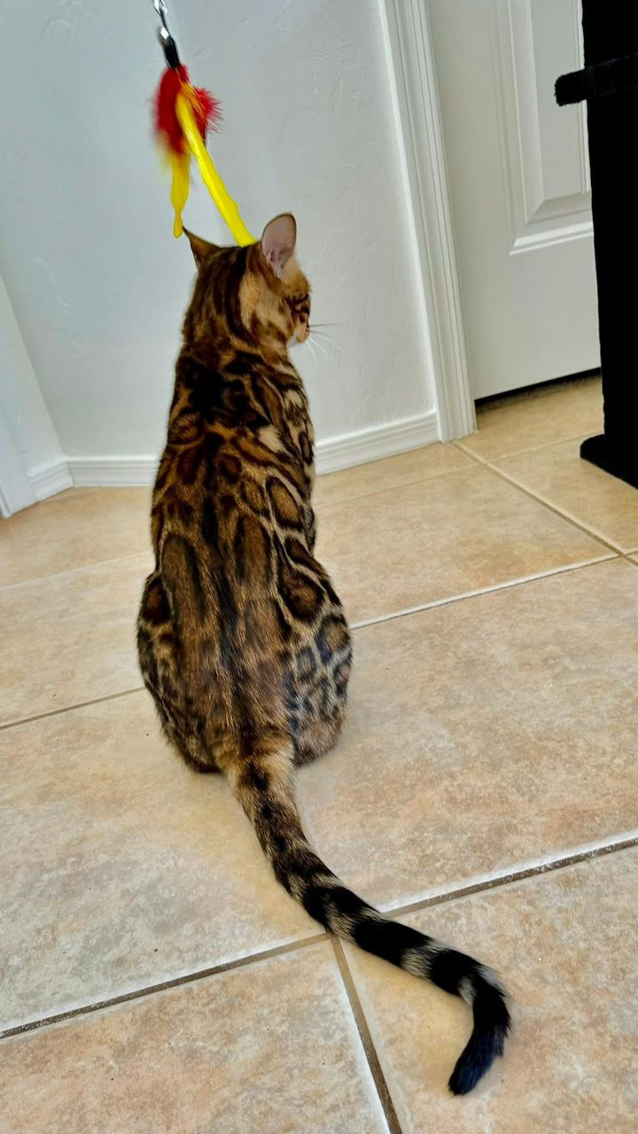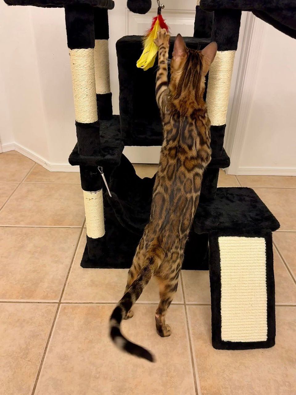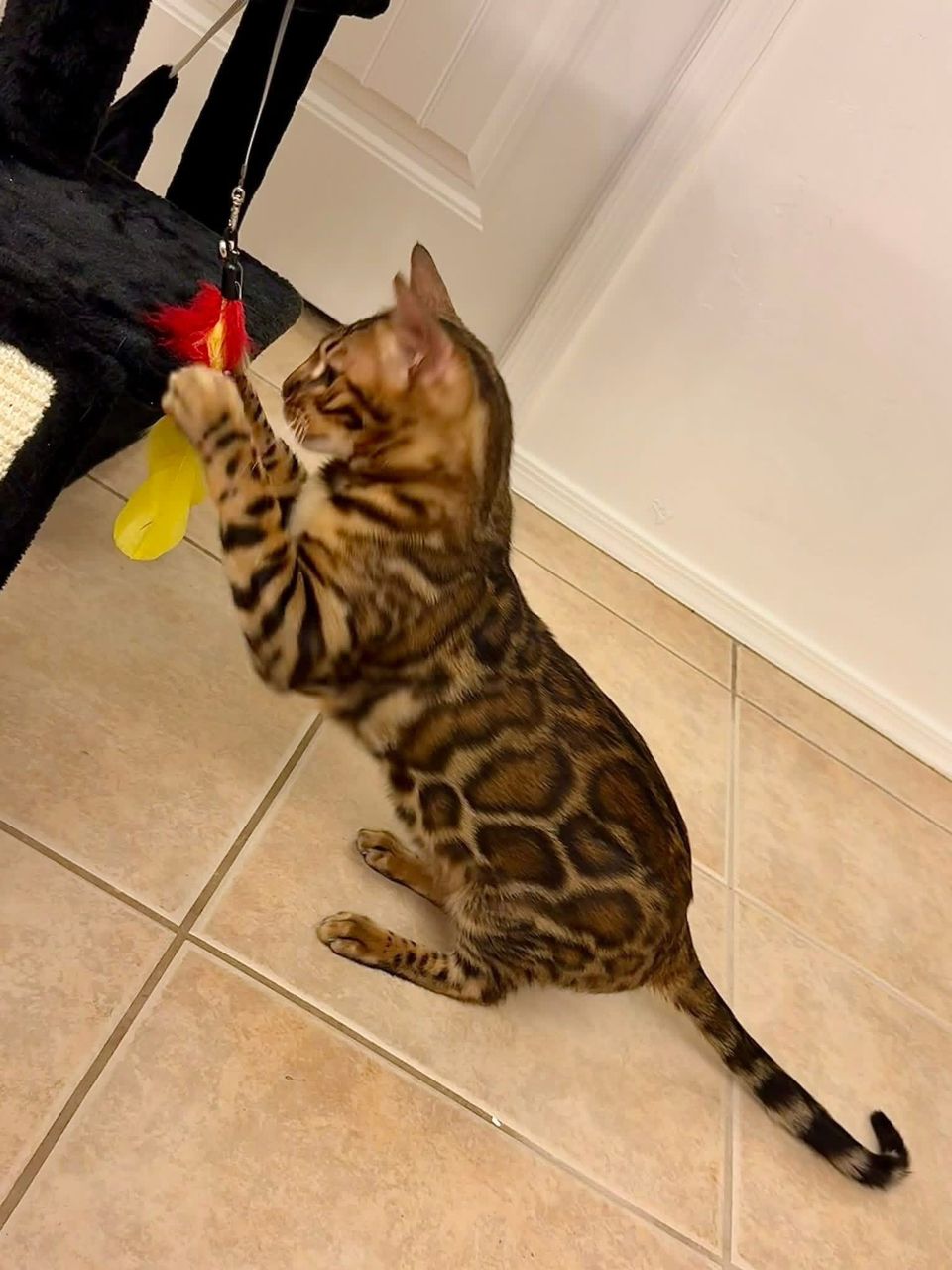 En vuxen Bengal på 3 år har redan utvecklat sitt temperament fullt ut, vilket gör det lättare för dig som köpare att veta exakt vilken personlighet du får. Det är ett perfekt alternativ för dig som vill undvika valp-/kattungestadiet men ändå få en ung, energisk katt.